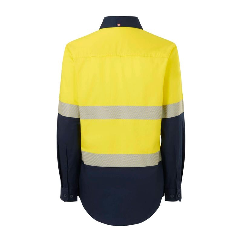 Size 12 Yellow/Navy Womens Long Sleeve Shirt Taped Hi Vis